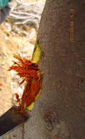 2.除卵、滅幼蟲:7-8 月份是成蟲產(chǎn)卵時(shí)間,成蟲產(chǎn)卵時(shí)在樹(shù)干上做“川”字或“U”字型刻槽,產(chǎn)卵于其中,可用石塊砸或用尖刀將卵挑出刺破即可。初孵幼蟲為害樹(shù)皮處有黃色膠質(zhì)物流出,用小刀挑開(kāi)皮層,刺殺幼蟲。