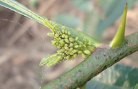 主要危害幼嫩組織,影響組織生長(zhǎng),嚴(yán)重時(shí)造成樹勢(shì)衰弱、大量落果。