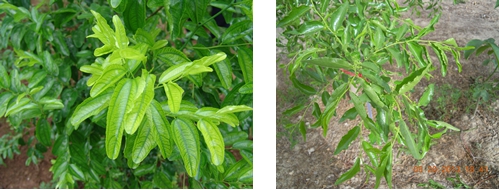 2013年4月下旬,在陜西大荔楊家棟冬棗園,針對缺素冬棗樹,噴施國光絡(luò)微2次,間隔15天噴施一次,2013年5月20日,觀察缺素棗樹,葉片轉(zhuǎn)綠,棗吊生長正常,花蕾分化好。
