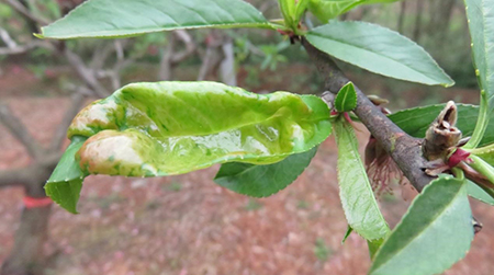 桃樹縮葉病是春季常見的一種病害,桃樹染病引起葉片腫脹皺縮,嚴重時病葉干枯脫落,對產量和品質有較大的影響,還會影響花芽形成和來年的產量。