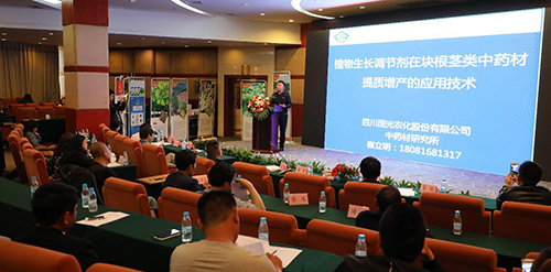 在專家座談中,四川省中藥行業(yè)協(xié)會會長石才金;四川大學(xué)華西藥學(xué)院教授張浩;四川省中醫(yī)藥科學(xué)院教授舒光明;四川農(nóng)業(yè)大學(xué)教授田孟良;四川省農(nóng)科院經(jīng)作所研究員張超;四川省農(nóng)業(yè)廳高級農(nóng)藝師李濤等領(lǐng)導(dǎo)、專家作了專題演講,國光作物調(diào)控技術(shù)研究院中藥材所負(fù)責(zé)人就植物生長調(diào)節(jié)劑在塊根莖類中藥材提質(zhì)增產(chǎn)的應(yīng)用技術(shù)進(jìn)行了分享。