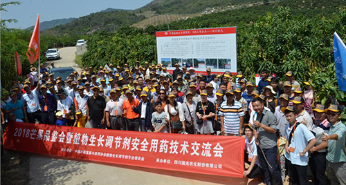 2018年3月30日—31日,由中國農(nóng)藥發(fā)展與應(yīng)用協(xié)會植物生長調(diào)節(jié)劑專業(yè)委員會主辦,國光承辦的2018芒果品鑒會暨植物生長調(diào)節(jié)劑(簡稱:植調(diào)劑)安全用藥技術(shù)交流會在三亞召開,海南省農(nóng)業(yè)科學(xué)院院長張治禮;中國熱帶農(nóng)業(yè)科學(xué)院副院長劉國道;全國農(nóng)業(yè)技術(shù)推廣服務(wù)中心農(nóng)藥與藥械處處長王鳳樂;中國農(nóng)藥發(fā)展與應(yīng)用協(xié)會秘書長花榮軍;廣西省農(nóng)科院白先進(jìn)研究員;中國農(nóng)業(yè)大學(xué)農(nóng)學(xué)院教授、長江學(xué)者、植調(diào)劑專委會主任段留生等領(lǐng)導(dǎo)、專家出席。農(nóng)民日報、農(nóng)資導(dǎo)報全程跟蹤報道。