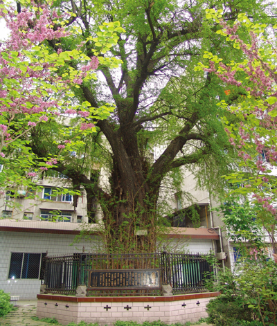 7、靠接小銀杏樹對古銀杏樹進行復壯。