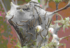 二是人工捕殺,幼蟲白天有群聚網內的特性,可以人工摘除網幕,集中燒毀,在分散前及時捕殺,分散后可采用振樹捕殺,從而減少蟲口密度;